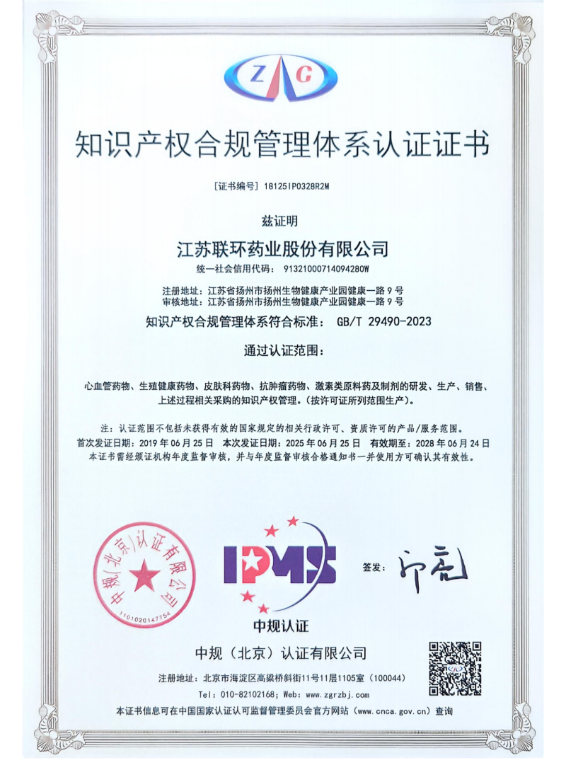 CopyRight ©2026 版權所有 江蘇聯環藥業股份有限公司 電話:0514-82778972 地址:揚州生物健康產業園健康一路9號
